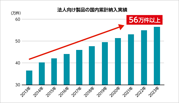 2003年から日本国内で販売をしており、法人向け製品の国内累計納入実績は56万件以上です。(シリアルナンバー発行数。登録名称重複を除く。2023年12月時点)