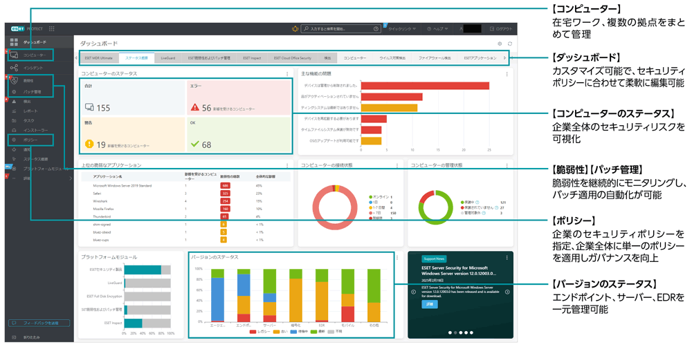 本機能は、ESET PROTECT Advanced/Complete/Enterprise/Eliteをご契約中でセキュリティ管理ツールで管理している環境でご利用いただけます。