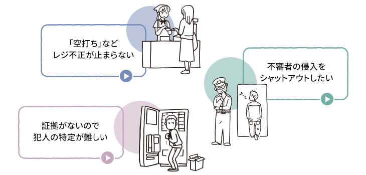 こうした被害への対策の一つとして今や当たり前となっているのが、監視カメラの設置。ネットワーク対応により、さまざまな周辺技術とも自在につながるようになったことで、その防犯力は飛躍的に向上しています。一歩進んだセキュリティー体制の構築で、内部不正の根絶を目指しましょう。