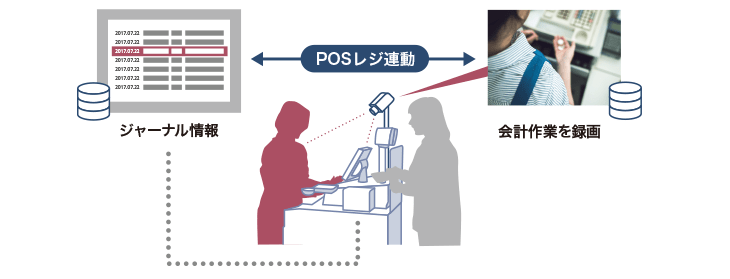 精算時に合計ボタンを押さずにレジ操作をキャンセルして現金を着服する「空打ち」など、自動釣銭機が普及しても依然としてレジ不正は止まりません。そこで注目されているのが、日時や担当者、取引金額、商品名、レシートNo、取引種別など、POSレジと監視カメラの連動で任意の録画映像を簡単に検索できるシステムです。例えば、取消処理の履歴が残っているのに、お客さまから現金を預かっている映像があれば、不正は一目瞭然。POSジャーナルとの連動なら見たい映像をピンポイントで確認でき、運用効率アップや不正対策の徹底につながります。