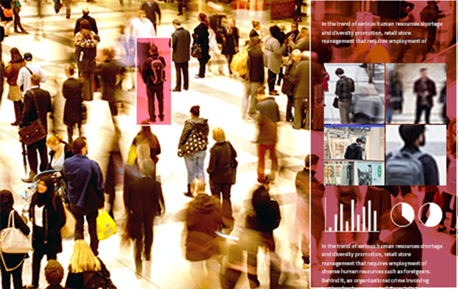 深刻な人材不足やダイバーシティ推進の流れの中で、外国人など多様な人材の雇用が求められる小売店経営。その裏側では、内部者をも巻き込んだ組織的な犯罪が報告されています。特に大規模店舗においては、被害額も甚大。こうした背景の下、現在開発が進められているのがAI(人工知能)を使った次世代画像解析技術です。外見や動作をAIに学習させ、不特定多数の中から怪しい人物を検知するそのしくみ。顔認証とは違い、顔が正確に映らなくても人物の特定が可能になるということで、大いに期待されています。