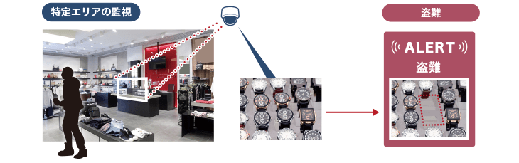 国際的な窃盗集団による組織的犯罪もエスカレートする、高額商品の万引き。一度に大量に狙われるケースも多く、被害額は甚大です。そこで、主にブランド品や貴金属を取り扱うコーナーで導入が検討されているのが、カメラによる陳列棚の監視です。これは、監視している棚の商品が無くなった際、映像の差分から変化を検知し、瞬時に管理者に報せるというもの。一気に大量の商品が無くなった場合や一定量無くなった場合など、通知の基準も自由に選べます。安価な商品と違い、特別な費用をかけてでも防犯体制を強化する意味がある高額商品。一つの店舗でも、商品ごとに投資対効果を考え、適材適所の防犯システムを組む。これからの防犯のあるべき姿かもしれません。