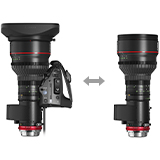 CINEMA EOS SYSTEMのカメラ群とマウント経由で情報通信が可能。撮影時のレンズ情報の表示・記録や、周辺光量補正が可能です。