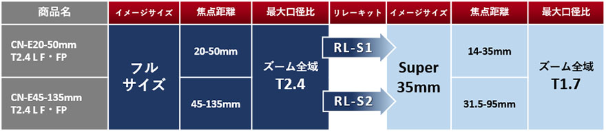 FLEX ZOOM Lens シリーズはリレーキットを使用することでイメージサークルが変更となり、Super35mmセンサーに対応することが可能です。これにより、様々なカメラに柔軟に対応することができます。