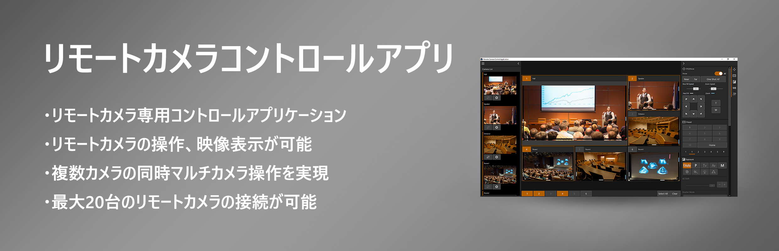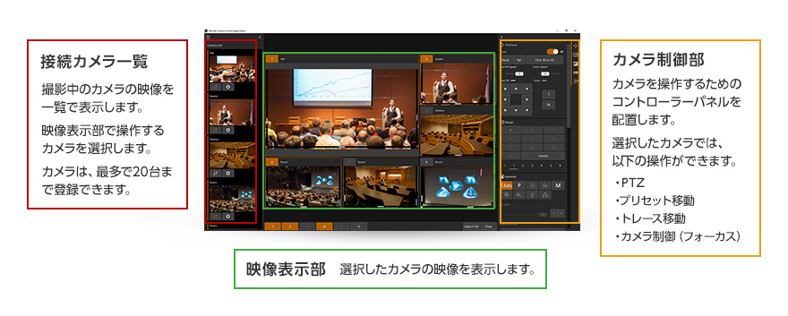 最大9台のリモートカメラを同時に操作することが可能です。