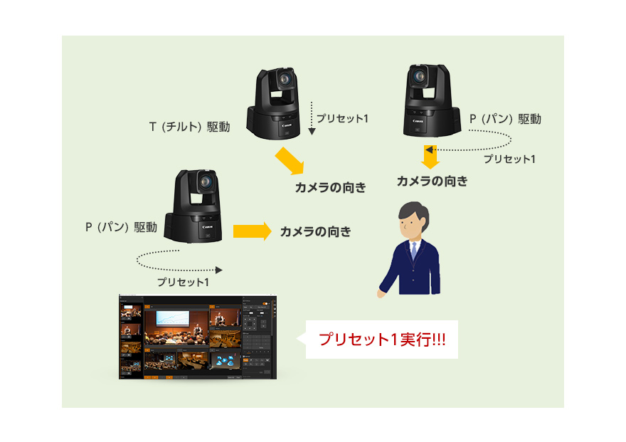事前に登録しておいたパン/チルト/ズームの位置などを登録できるプリセット機能を搭載。