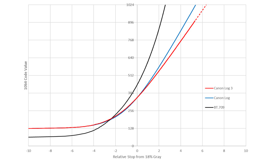 Canon Log 3は暗部を締め、階調を整える程度の簡易グレーディングを考慮した特性のガンマで、ノイズが目立ちにくく、Canon Logの扱いやすさを残したガンマとなっています。