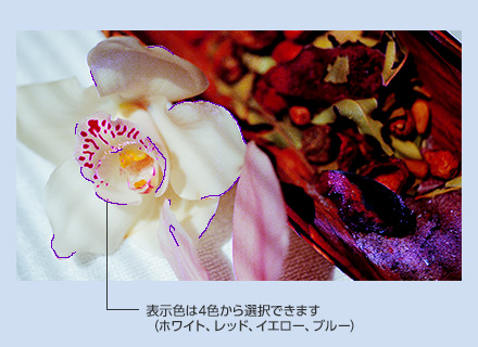 合焦状態に応じて、映像の輪郭に色がついて強調される機能。MF(マニュアルフォーカス)時のピント調整をアシストします。