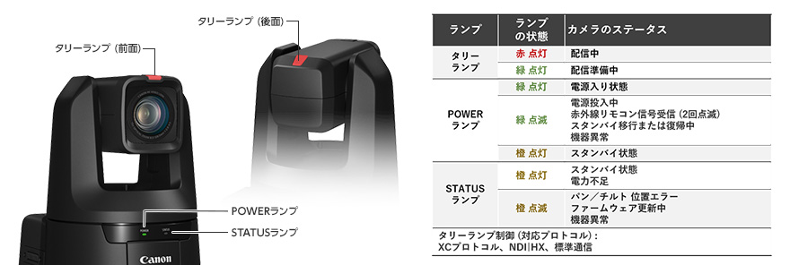 各種ランプでカメラのステータスを一目で確認できる