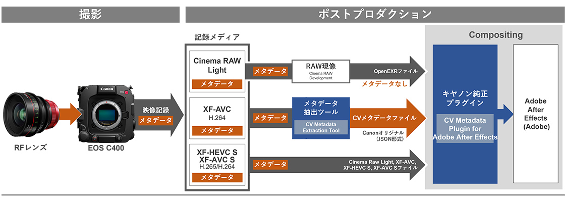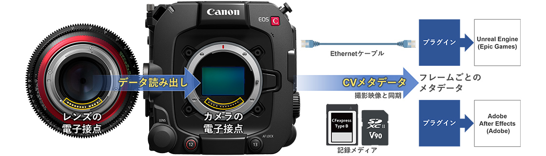 キヤノン純正システム:RFマウントシステムの高速通信によるリアルタイムメタデータ出力