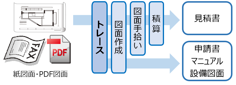 - FAXで送られてくる図面やPDF図面をトレースして書き直すのに数日かかる