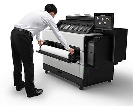 これまでのimagePROGRAFシリーズの排紙機構を一新し、上面排紙スタッカー「上部排紙トレイ」を標準搭載。出力順に整列積載された普通紙、A0サイズの出力物を最大100枚積載可能です。フェイスダウンでの出力なので機密性の高い図面が他人の目に晒されることも避けられます。