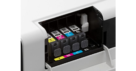 BK/C/M/Y各色が独立したインクカートリッジを採用。各色ごとに交換ができるため、無駄がなく経済的です。