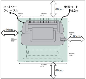 プリンターサイズ | (W)1,563mm×(D)803mm×(H)1,695mm | |