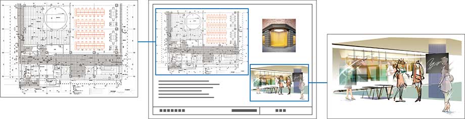 最大A2サイズまでの図面や原稿を、縮小することなくフルカラーでスキャンすることが可能。赤黒2色やカラーペンで指示の書かれた図面、スタンプが押印されたドキュメントをフルカラーで保存したり配布することができます。