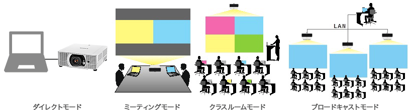 「ブロードキャストモード」では複数の会場や場所で一斉に映像投写が可能。