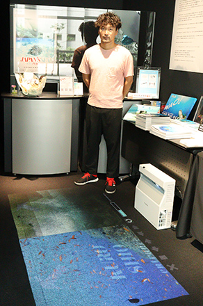 プロジェクターを設置したいなと思っても、設置する場所やスペースが難しいことがあると思います。今回エントランスにおいた機材は、床にプロジェクターを置くだけであれだけ大きく映写できる。今回の床面投写により、僕たちがこれからできることの幅がどんどん広くなっていって、写真と映像、作品にあわせた新しい展示を感じられたのではないかなと思いました。