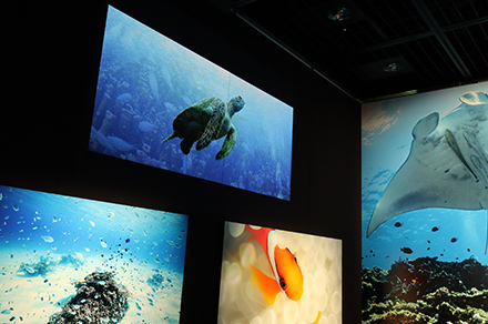 写真展では、日本の海が亜寒帯から亜熱帯までの生物相をカバーするユニークな生態系を持つ海であり、世界有数の多様性を有していることに着目し、入り口を『北から南下するルート』と『南から北上するルート』に分けることで、親潮/黒潮の流れに沿った作品を体感することができるようになっている。