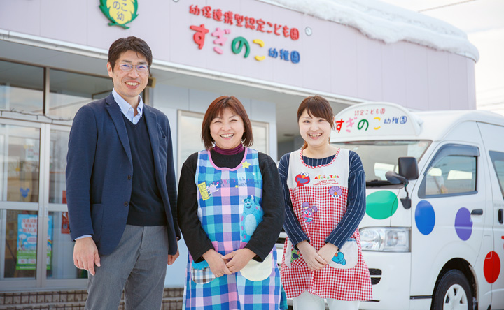 コミュなびの活用で、出欠連絡は自動化され、園内では電話応対の時間が大幅に短縮された。またスクールバスの運行状況がいつでもわかるため、園児や保護者たちが、雪の降る中で長時間バスを待つ必要もなくなった。今年新たに追加されるサービスも使用を検討中だ。こども園の皆さんは嬉しそうに微笑む。「『コミュなび』が、保護者も職員も感じなくていいストレスから解放してくれました