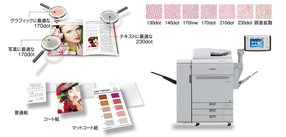 - 普通紙や上質紙、コート紙などに適した自然な光沢を再現