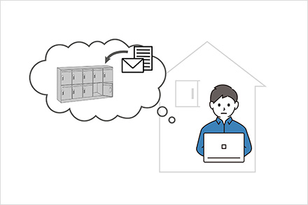 投函口のあるパーソナルロッカー設置により在宅勤務や外出などで不在の社員にも、書類を投函するだけで確実に届けることができます。