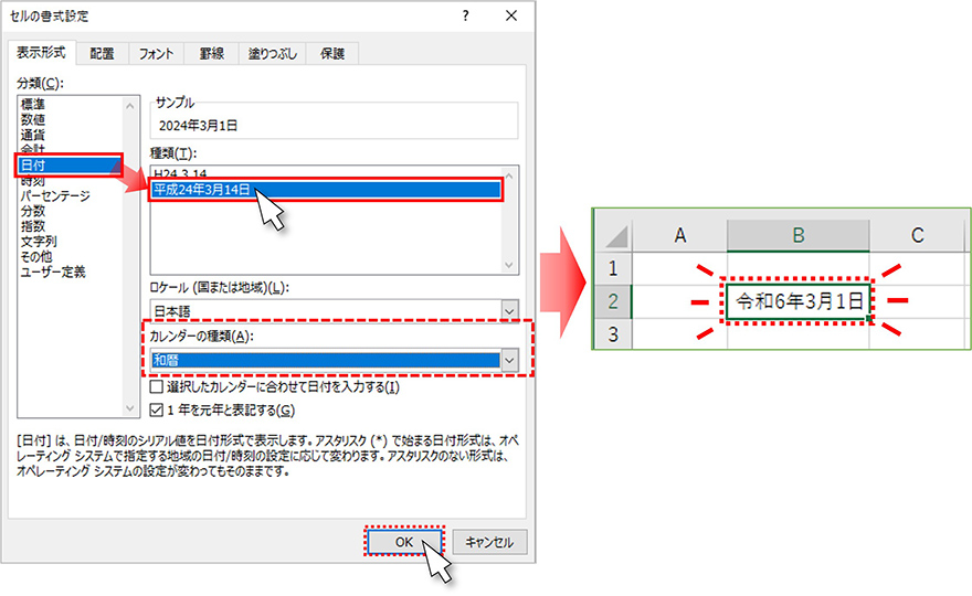 Excelは「セルの書式設定」を活用して、日付書式の選択・設定ができます。さあ、チャレンジ!