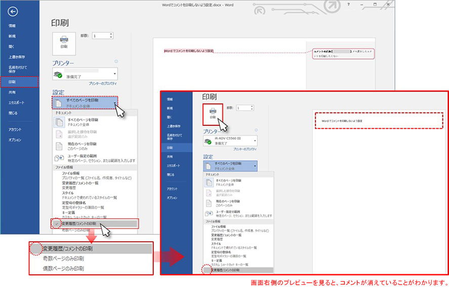 最後に印刷ボタンを押すと、コメント非表示で印刷することができます。