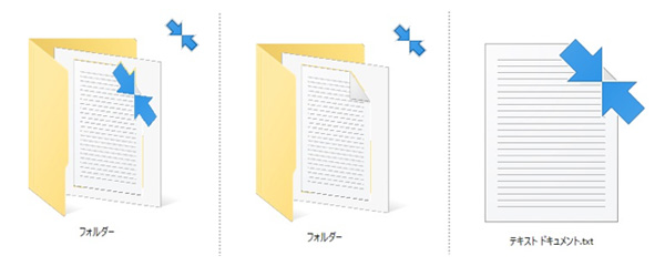 青い矢印が表示されているアイコンでは、そのファイルやフォルダが圧縮されていることを表しています。