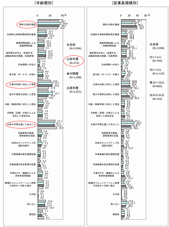 厚生労働省によりますと建設現場で働く若手が求めることとして以下が挙げられています。