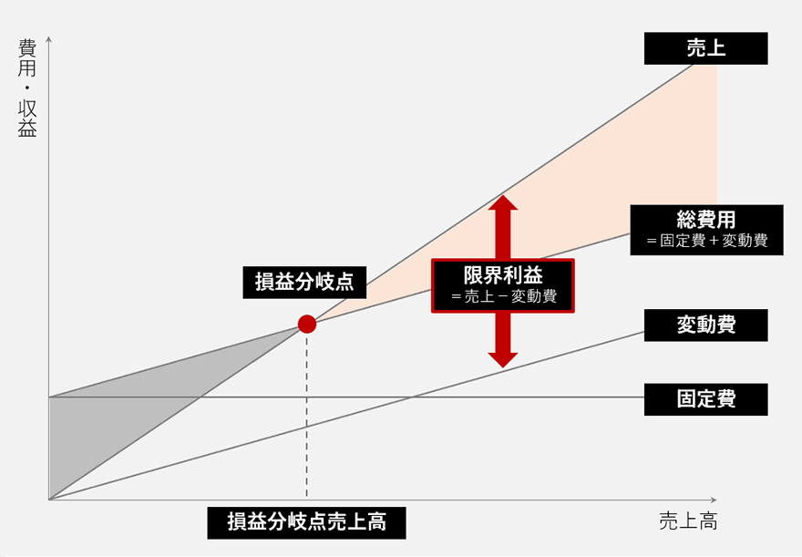 変動費と固定費が把握できると経営指標である「限界利益」および「損益分岐点」が見えてきます。