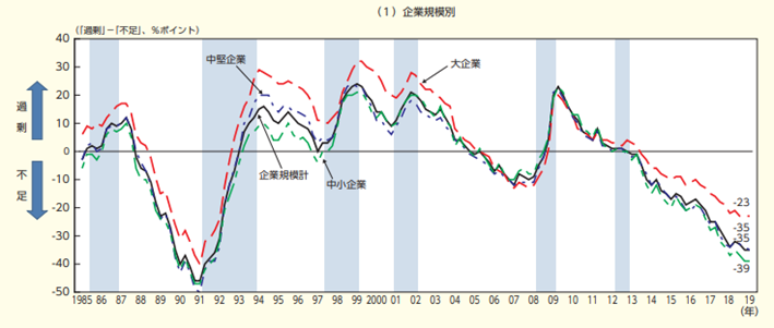 日本銀行「全国企業短期経済観測調査」をもとに厚生労働省政策統括官付政策統括室にて作成