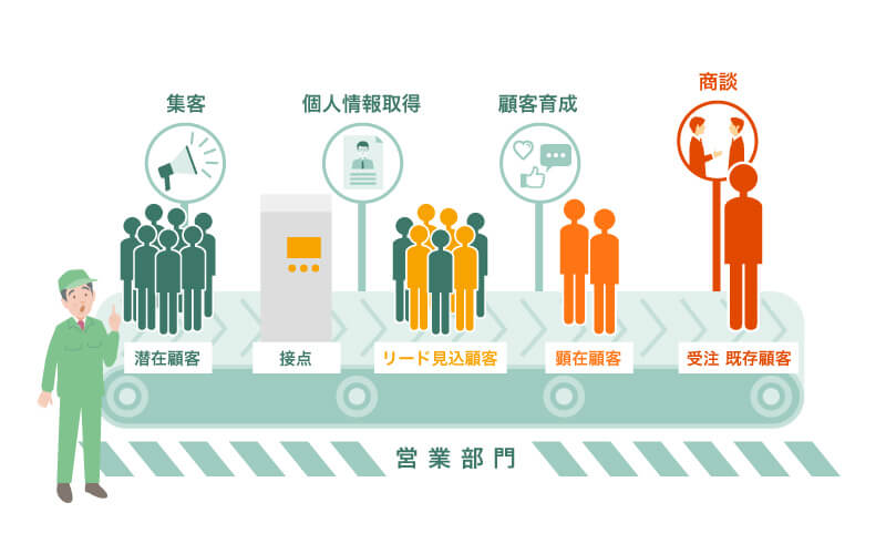 インターネットを使った集客の仕方は、概ね理解できた。展示会で出会う機会が激減している今、ネット広告を駆使して、まずはホームページに呼び込むこと。そこにはお客さまに個人情報を入力してでも見たいと思ってもらえるような情報を掲載することが大事なんだな。ちなみに、そうやってお客さまの情報を取得することを「リード獲得」って言うらしい。リード・・・手がかり、糸口、きっかけって意味ね。これが見込み客獲得になるんだ。