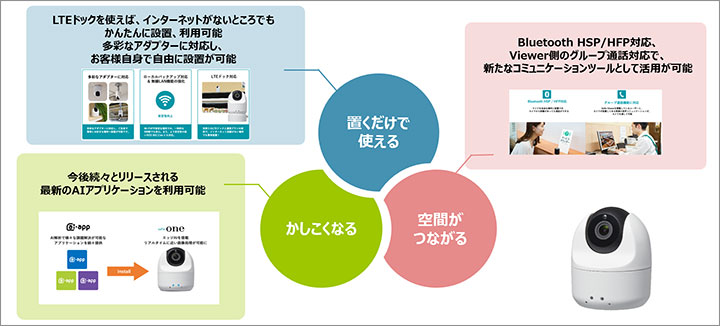 - 音声通話も可能なカメラで空間がつながる