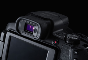本格的なファインダー撮影が楽しめるよう、約236万ドットの有機ELパネルを採用した0.39型の高精細EVFを内蔵するとともに、グリップ部や電子ダイヤルなどの操作部材の配置を見直しています。また、EVFの接眼部に新たに備えた「アイセンサー」により、ファインダー表示とライブビュー表示を自動で切り替えることができます。