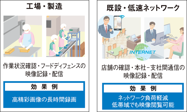近年、ビッグデータやAIを活用した人物の行動分析や機械の故障予測など、IoTを活用した解析ソリューションの市場拡大がさまざまな分野で期待されています。特に映像ソリューションの市場は、防犯用途において映像を単に録画するだけでなく、遠隔による人物や設備などの状況・状態把握から、映像解析による業務の見える化・効率化およびマーケティング支援など、多岐にわたり需要が高まっています。しかしながら、伝送・蓄積する映像データの大容量化に伴い、ストレージ容量の増大やシステムへの負荷増加のため維持管理・追加投資が必要となり、運用コストが増加する問題が起きています。