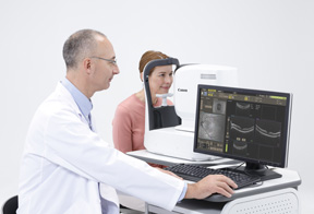 光干渉断層計は、網膜の断層面を見ることができる眼科機器です。新製品"OCT-A1"は、ディープラーニング技術を用いた画像処理技術と高性能GPU(画像処理半導体)により、OCTA画像生成の高速化と高画質化を両立しています。新たにブランド名を「Xephilio(ゼフィリオ)」として、眼科系医療機関へ幅広く展開していきます。