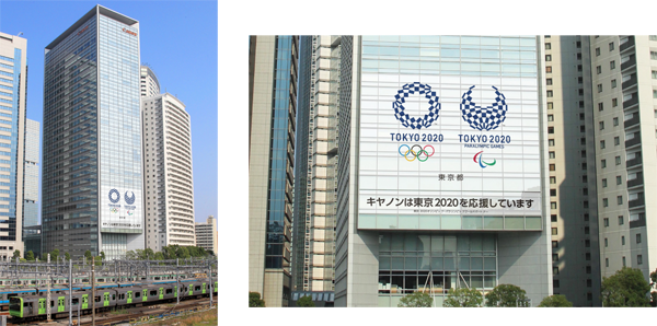 キヤノンは、東京2020オリンピック・パラリンピック競技大会(以下、東京2020大会)を応援するため、東京都が主体となって実施する「民間施設を活用した東京2020オリンピック・パラリンピック競技大会の装飾事業」に協力します。この事業の一環として、品川駅に隣接するキヤノンマーケティングジャパン本社キヤノン S タワー外壁への過去最大サイズ※の東京2020大会エンブレム装飾に協力します。