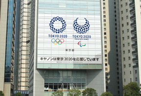 キヤノンは、東京都が主体となり実施する装飾事業の一環として、東京2020オリンピック開催1年前となる7月24日より、キヤノン S タワー外壁への大会エンブレムの装飾に協力します。掲出される大会エンブレムは、過去最大サイズ(幅約27.0m×高さ約17.4m)です。キヤノン S タワーは、新幹線をはじめとする、多くの路線が乗り入れる品川駅に隣接し、エンブレム装飾が行われる西側の外壁は駅のホームや、地上を走行する電車の車内から見ることができます。