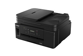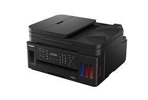 "G7030"は、ブラックインクボトル(別売り)1本分の容量で約8,300ページ※1、カラーインクボトル(シアン ⁄ マゼンタ ⁄ イエロー・別売り)の場合は約7,700ページ※1の大量印刷が可能です。インクコストは2機種ともA4モノクロ文書1ページ当たり約0.4円※2、"G7030"はA4カラー文書1ページ当たり約0.9円※2と低ランニングコストを実現しています。また、最大250枚積載可能な給紙カセットと、背面給紙を合わせて最大350枚の大量給紙による高い生産性を実現しています。さらに、2機種とも最大35枚積載可能なADFの搭載により、スキャンやコピーの際にカバーを開けることなく原稿の連続読み取りが可能になり、業務効率の向上に貢献します。