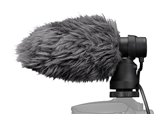 無指向性のカメラ内蔵マイクに比べて、周囲の雑音を抑えながら動画の撮影を行うことができるため、屋外活動や旅行といったシーンで音質にこだわった動画撮影を楽しむのに適しています。さらに、風防効果の高いファー型のウインドスクリーン(同梱)を用いることで、風切り音などの雑音を抑えた動画の撮影ができます。