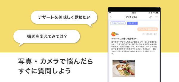 ユーザー同士で写真の撮り方の疑問や要望を投稿し、回答するサービスです。