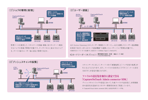 専用のサーバーソフト"CaptureOnTouch Admin"は、スキャン設定やユーザー情報の集中管理を可能にし、分散業務における効率的で安全性の高いスキャナーの運用を実現します。"CaptureOnTouch Admin"を使用することで(1)「ジョブの管理と配信」、(2)「ユーザー認証」、(3)「プッシュスキャンの拡張」といった新たな機能を実現できます。