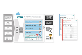 ETIは、ESET社が世界中の1億台以上の端末から収集、分析した脅威情報を6つのサービスとして展開します。ボットネットや悪質な疑いのあるファイル、URLなどの情報をSIEM<sup>※2</sup>などのシステムと連携可能なデータとして提供する「ETI Botnet Feed」「ETI Malicious Files Feed」「ETI Domain Feed」「ETI URL Feed」、予測される個別の攻撃の情報をレポートする「ETI Early Warning」、攻撃に使われたマルウェアなどを解析しインシデント調査に役立つ情報をレポートする「ETI Automated Sample Analysis」など、必要に応じてサービスを選択することが可能です。本サービスによりサイバー攻撃の予兆や攻撃手法の解析、世界で使われている攻撃ツールの検出状況などを把握し、「今は見えていない攻撃」や「将来発生しうる攻撃」を予測できるため事前にサイバーセキュリティ対策を講じ被害を最小限に抑えることが可能です。