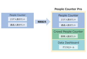 "People Counter Pro"にバージョンアップするソフトウエアは、「People Counterシリーズ」のうち、"People Counter"と"People Counter for Milestone XProtect"。