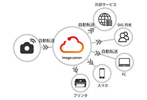 カメラから"image.canon"へ静止画・動画を自動転送可能