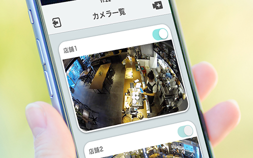 - 小売店/飲食店などにおいて、店舗での混雑状況の把握や、本部からの新型コロナウイルス感染症拡大対策の状況確認などを臨店せずに把握することが可能となり、業務効率化を実現します。また、店舗や事務所の不在時のセキュリティー対策として要望の高まる遠隔モニタリングへ対応します。