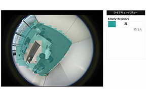 指定したエリア内の混雑状況を検知し視覚化、「限度値」を設定することでアラートを通知できます。
