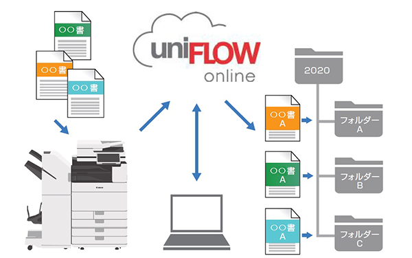 キヤノンは、オフィス向け複合機「imageRUNNER ADVANCE DX」シリーズ(2020年6月発売)の機能を拡張する新たなクラウドサービスとして、紙文書の電子ファイリングの自動化・効率化を実現する"uniFLOW Online Cloud Scan Advance (ユニフロー・オンライン・クラウド・スキャン・アドバンス)※1"の提供を2020年7月29日より開始します。