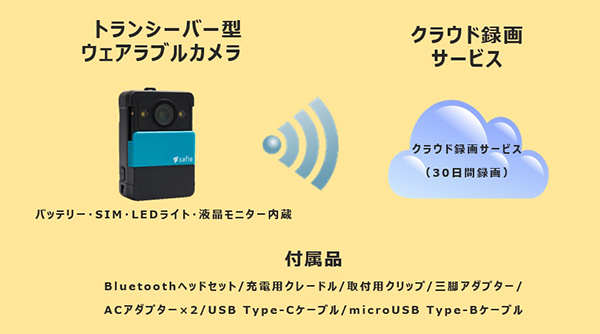 "Safie Pocket2"は、クラウド録画プランとトランシーバー型ウェアラブルカメラ、ヘッドセットなど付属品を含んだ(オールインワン)パッケージです。