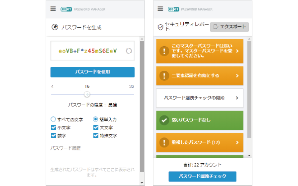 最新版ではパスワード管理ツール「Password Manager」を刷新し、パスワード生成や強度チェック、重複チェックといった基本機能に加え、"パスワード漏洩チェック機能"を新たに搭載します。100億件以上の既知の漏洩データと照合し、合致するパスワードがある場合にはユーザーに通知し速やかな変更を促し、漏洩被害の発生を未然に防ぎます。